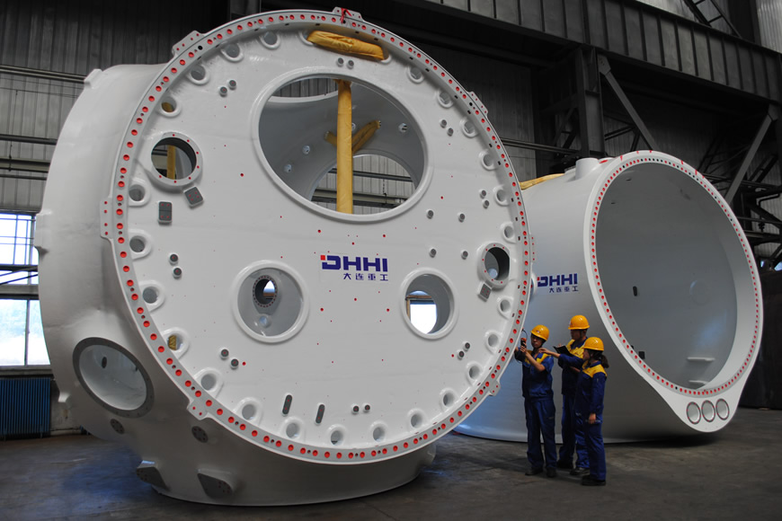 風(fēng)電球鐵鑄件方面,大連重工球墨鑄鐵風(fēng)電產(chǎn)品年產(chǎn)能10萬(wàn)噸,擁有鑄造生產(chǎn)線8條,產(chǎn)品覆蓋0.85至12兆瓦等多種機(jī)型(輪轂、彎頭、底座等),月產(chǎn)海上風(fēng)電鑄件產(chǎn)品70套以上,率先成功研制出3至4.5 兆瓦、5至7兆瓦、8至10 兆瓦、10至12 兆瓦等多種風(fēng)電機(jī)型鑄件產(chǎn)品。