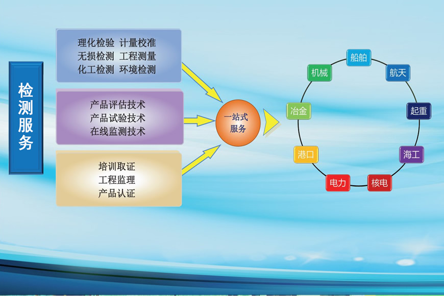 檢測服務方面,大連重工現(xiàn)有檢測業(yè)務服務范圍涵蓋理化檢驗、計量校準、無損檢測、產(chǎn)品綜合檢測等方面,擁有測量設備2000多臺(套),有約50名國家注冊一、二級計量師、高級工程師等專業(yè)人員,檢測業(yè)績主要涉及國內(nèi)外港口、散料、起重、冶金、核電、風電、火電、水電、海工等領域。